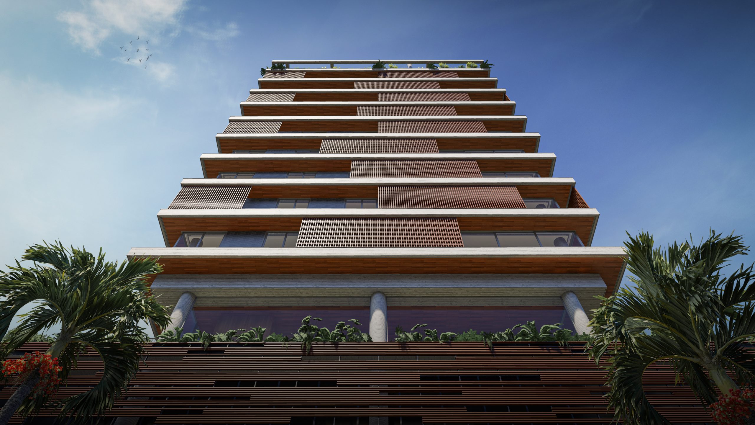 Sombreamos as fachadas envidraçadas com brises muxarabi.